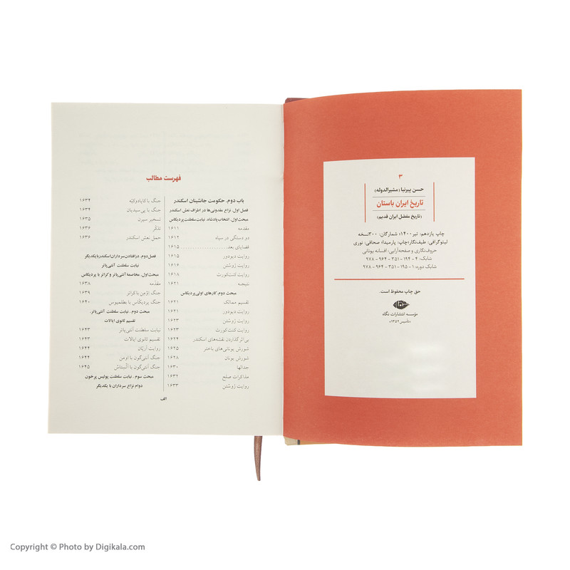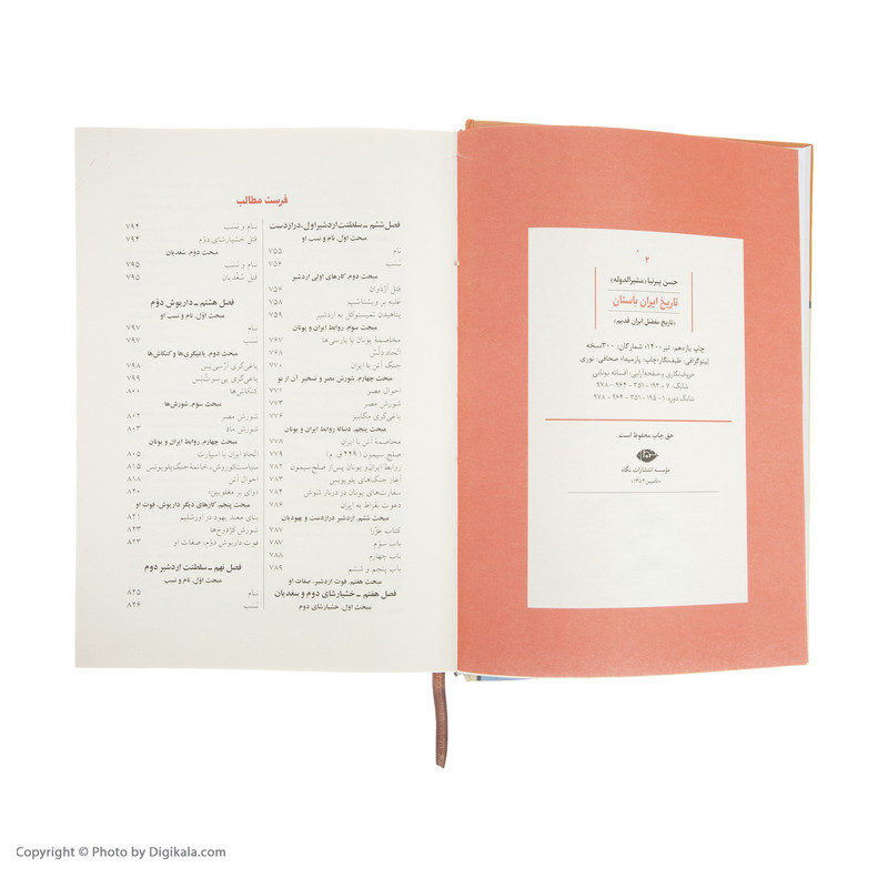 مجموعهی سه جلدی «تاریخ ایران باستان» نوشتهی «حسن پیرنیا» است. ناشر در توضیح این مجموعه آورده است: «کتاب تاریخ ایران باستان (در سه جلد) نخستین کتابی است که به شیوه علمی و بر اساس مستندات و کشفیات باستانشناسی درباره گذشته تاریخی ایران نگاشته شد و هنوز هم مورد توجه است. این کتاب تنها به تاریخ ایران اختصاص ندراد، بلکه دایرهالمعارفی است در باب تاریخ و تمدن و فرهنگ گذشته ممالک مهم دنیا به ویژه یونان، روم، سوریه، مصر، عربستان، هند و… چنان که هنگام مطالعه این اثر تنها با تاریخ و سرگذشت سلسلههای ایرانی ماد، هخامنشی،اشکانی و سلسله یونانی سلوکی آشنا نمیشویم، بلکه در زمینه تاریخ خاورمیانه امروز و یونان باستان اطلاعات دست اول خواهیم یافت.» در بخشی از کتاب میخوانیم: «از تمام روایات غیر از روایات گزنفون، چنین استنباط میشود که کوروش پس از تسخیر بابل در شمال و شرق ایران به سکاها پرداخته و حدود ایران را به سیحون رسانیده ولی در باب جنگی که در آن کشته شده یا زخم برداشته گفتههای مورخین مذکور مختلف است.» کتاب حاضر را انتشارات «نگاه» منتشر کرده و در اختیار مخاطبان قرار داده است.