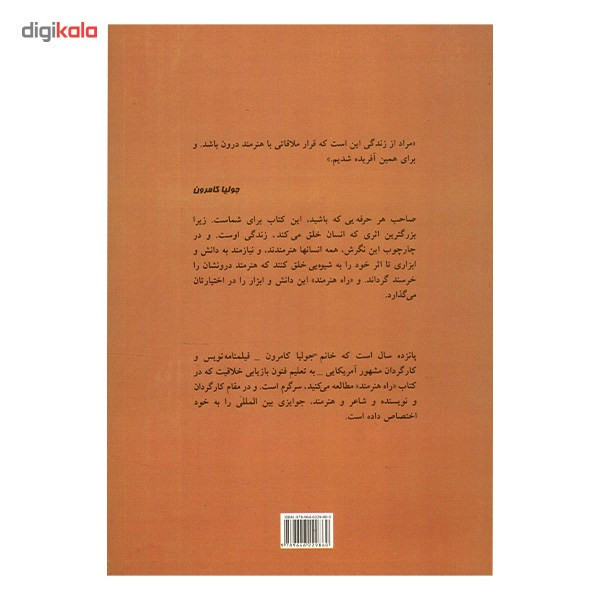 کتاب «راه هنرمند: بازیابی خلاقیت» نوشتهی «جولیا کامرون» توسط «گیتی خوشدل» ترجمه شده است. این کتاب مجموعهای از تمرینها و روشهایی را که برای برقراری ارتباط با خدای خلاق و رسیدن به هنرمند خلاقی که درون هر انسان وجود دارد، ارائه میدهد. در بخشی از مقدمه آمده است: «راه هنرمند در جوهر، راهی معنوی است که از طریق خلاقیت، آغاز و طی میشود. این کتاب کلمه "خدا" را به کار میبرد، که شاید در چشم بعضی از شما کاربرد آن برای مساله خلاقیت بسیار سادهدلانه بنماید و شاید نیز استمساک به اندیشههایی کهنه و غیرعملی که به دل نمینشیند، یا صرفا آرمانهایی که در قیاس با آنچه در کودکی درباره "او" آموخته و دریافته بودید، باورنکردنی بنماید. لطفا ذهنی باز و گشوده داشته باشید... هرگاه در این صفحات کلمه "خدا" به کار میرود، میتوانید عبارت "مسیر یا جریان منظم نیکو" را به جای آن بنشانید. زیرا آنچه دربارهاش گفتگو میکنیم نیرویی خلاق است. خدا برای بسیاری از ما مجموعهای از مفاهیمی چون الهه و ذهن و کائنات و منشا و قدرت برتر است. نکته نامی نیست که بر آن مینهید. نکته این است که میکوشید آن را در عمل خود عیان سازید. برای بسیاری از ما اندیشیدن به آن نیرو به صورت جرقهای معنوی، خاستگاهی بسیار سودمند بوده است.» کتاب حاضر توسط نشر «پیکان» منتشر شده و در اختیار مخاطبان قرار گرفته است.
