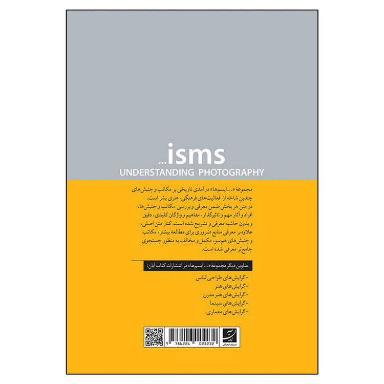 رایش های عکاسی، مجموعۀ «…ایسم ها» درآمدی تاریخی بر مکاتب و جنبشهای چندین شاخه از فعالیتهای فرهنگی – هنری بشر است. در متن هر بخش ضمن معرفی و بررسی مکاتب و جنبشها، افراد و آثار مهم و تأثیرگذار، مفاهیم و واژگان کلیدی، دقیق و بدون حاشیه معرفی و تشریح شده است. کنار متن اصلی، علاوه بر معرفی منابع ضروری برای مطالعۀ بیشتر، مکاتب و جنبشهای همسو، مکمل و مخالف به منظور جستوجوی جامعتر معرفی شده است. در کتاب گرایش های عکاسی تلاش شده بهگونهای مفید و موجز، عمدۀ گرایشهایی که از اولین روزهای پیدایش عکاسی تا اواخر دهۀ دوم قرن بیستم (حدود دویست سال) در عکاسی نقش ایفا کردهاند، معرفی و بررسی شود. وجود بخشهای تکمیلی کتاب، بهخصوص بخش افراد کلیدی و کارهای دیگر، سبب شده با متنی روبهرو باشیم که قابلیت گسترش داشته و برای مخاطب خود زمینۀ جستوجو و بررسی کارهای بیشتر و آشنایی عمیقتر با گرایش مورد نظر را میسر سازد. نظم و نوع دستهبندی متعارف کتاب نیز سبب میشود که مخاطب بتواند ردّ و اثر گرایشها و جنبشهای گوناگون عکاسی را در هنرهای دیگر پیگرفته، در یک بستر تاریخی با هم مقایسه کند. این امکان، دیدی جامع نسبت به تاریخ هنر و در دل آن تاریخ عکاسی را میسر کرده، درک تأثیرات و تأثرات افراد، آثار، گرایشها و جنبشها را بر هم ممکن میکند.